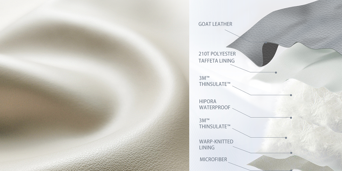 Soft, tanned goat leather for enhanced grip, comfort, and long-lasting flexibility.